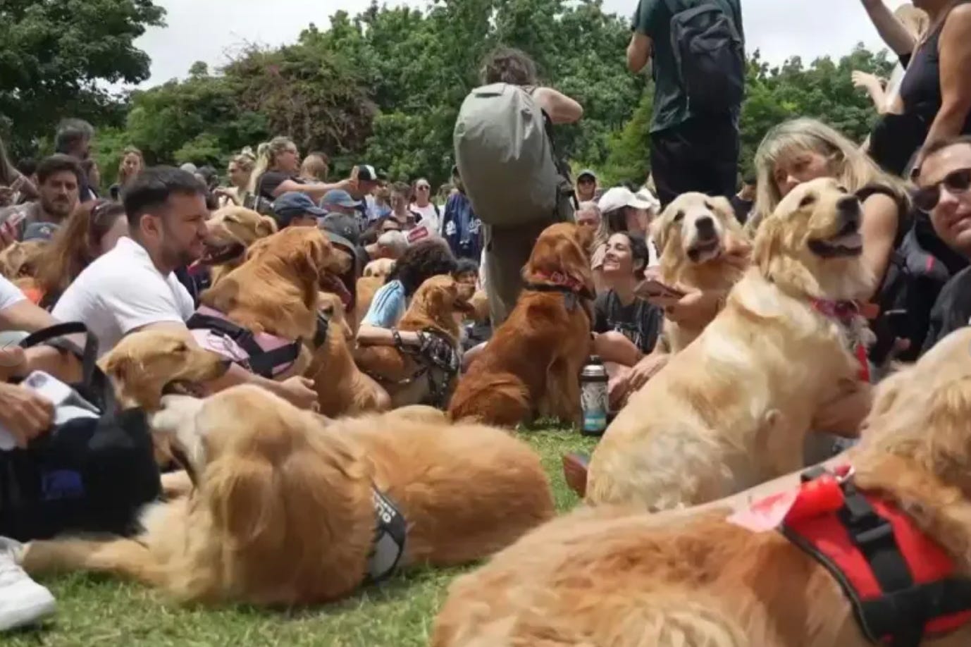 Mii de lătrături amestecate, cozi fluturând și 2.397 de golden retrieveri transformați într-o mare aurie, la Bosques de Palermo, parcul uriaș din Buenos Aires. Asta s-a întâmplat recent.