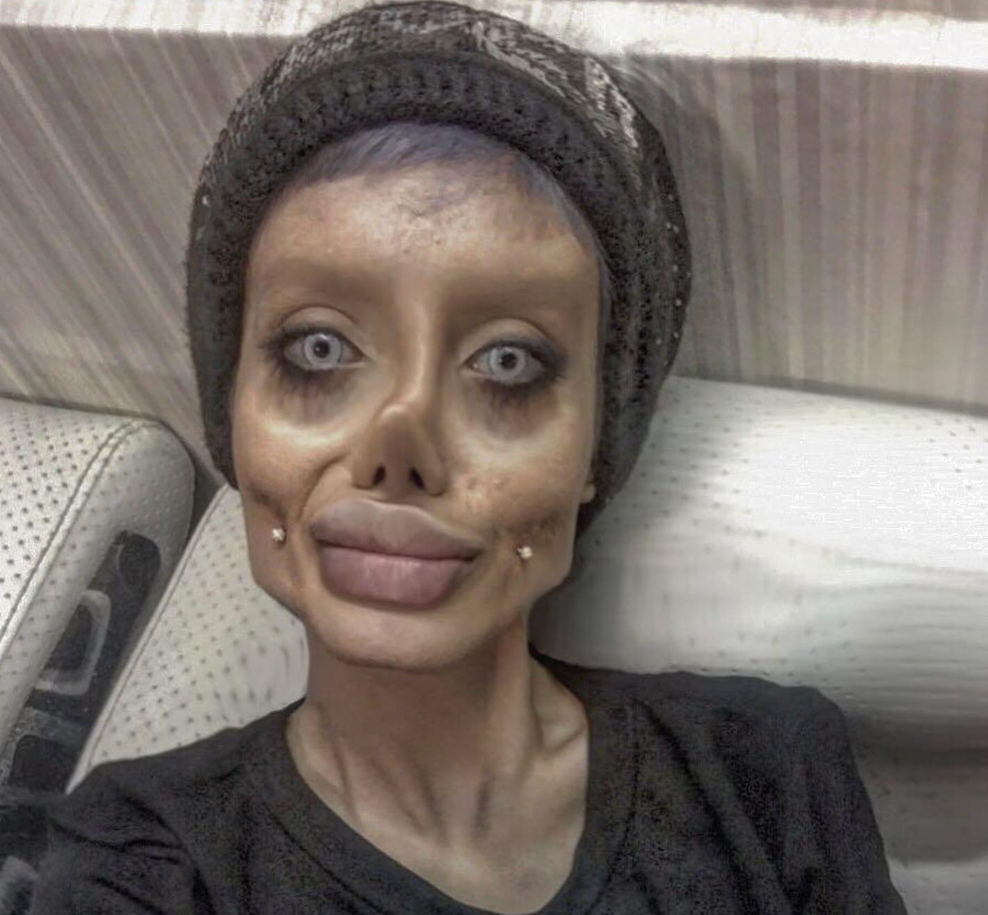 Sahar Tabar, o tânără de 19 ani din Iran, a devenit viralǎ pe internet în ultimele zile din cauza aspectului ei asemănător cu cel al unui zombie — rezultat, se pare, al zecilor de intervenții estetice prin care a încercat să semene cu Angelina Jolie.