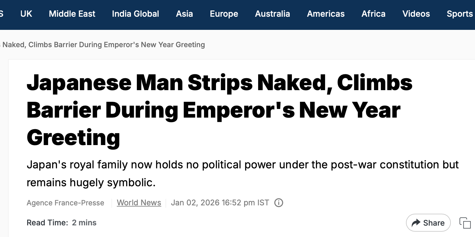 Un bărbat s-a dezbrăcat complet în faţa împăratului Japoniei şi a familiei sale