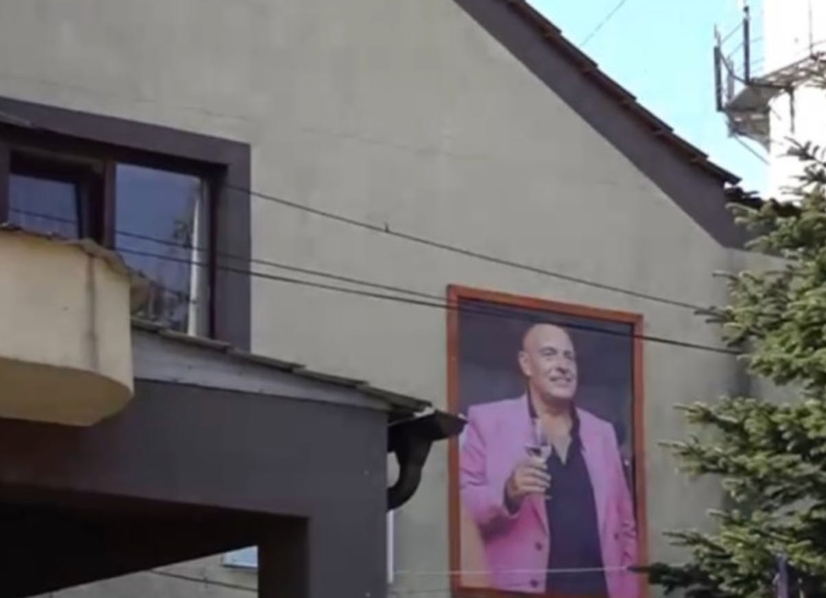Portret neobișnuit pe fațada primăriei din Gogoșu, Mehedinți: fostul primar, acum decedat, imortalizat cu un pahar de vin în mână