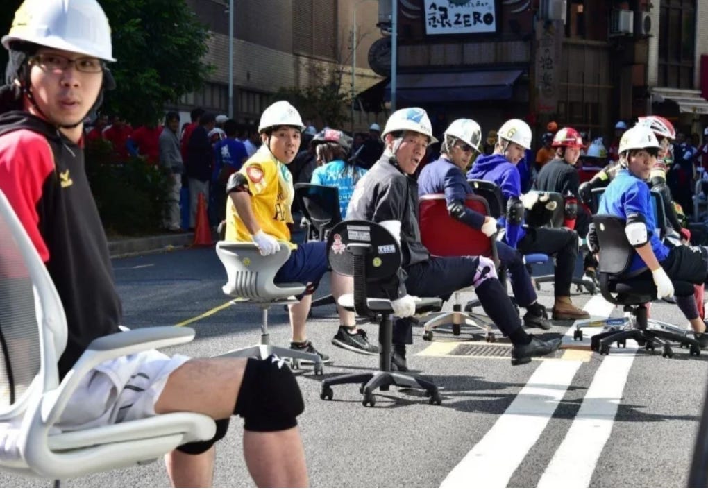 În Japonia, plictiseala e maximǎ: recent, a avut loc un eveniment de amploare: curse pe scaune de birou. Evenimentul s-a desfășurat în orașul Kionanabe (prefectura Kyoto).