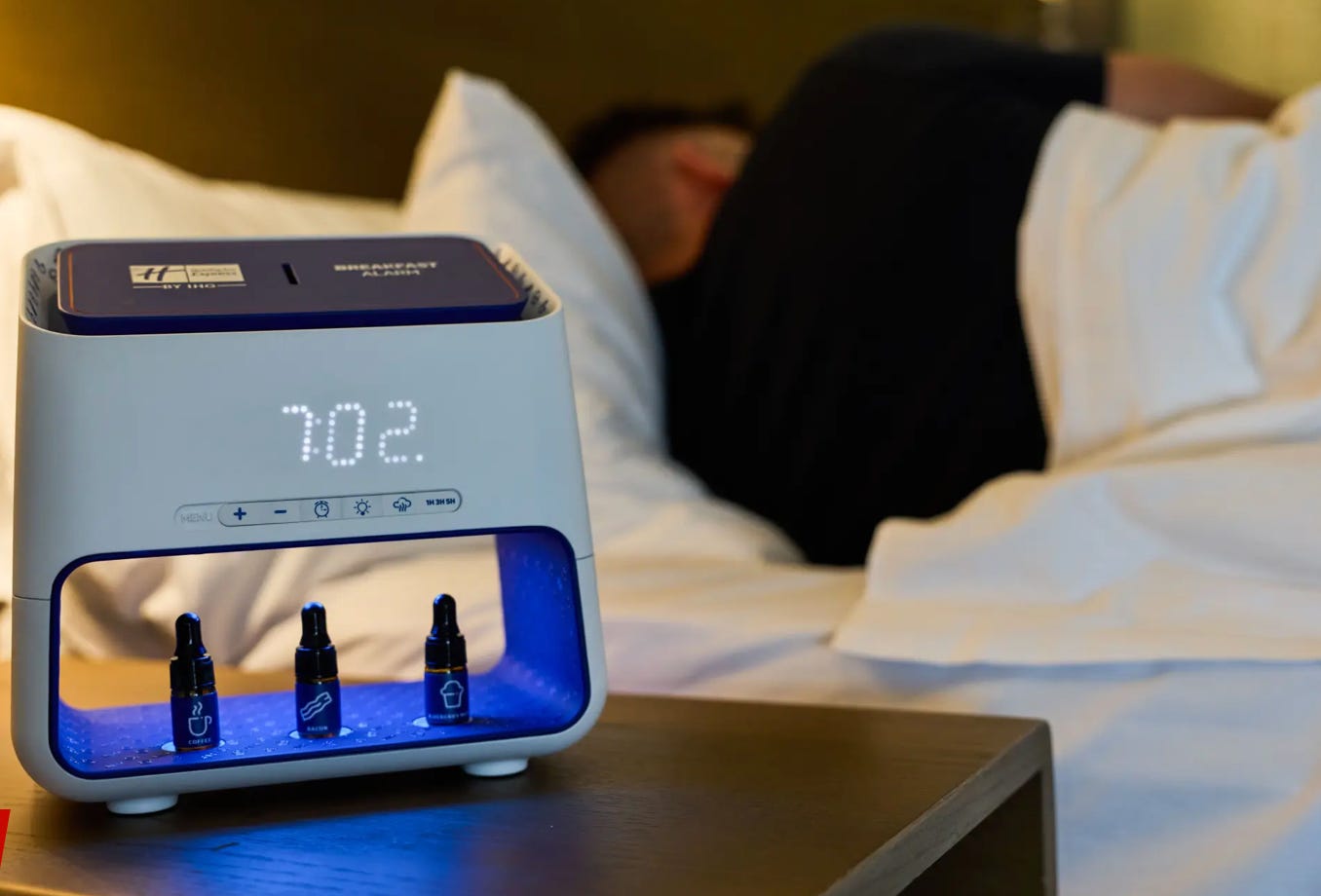 Lanțul hotelier Holiday Inn Express a lansat o experiență unică la nivel mondial, menită să transforme diminețile oaspeților cu ajutorul unor arome irezistibile. Noul dispozitiv, numit “Ceasul Deșteptător cu Mic Dejun”, trezește oaspeții cu mirosul mâncărurilor preferate.